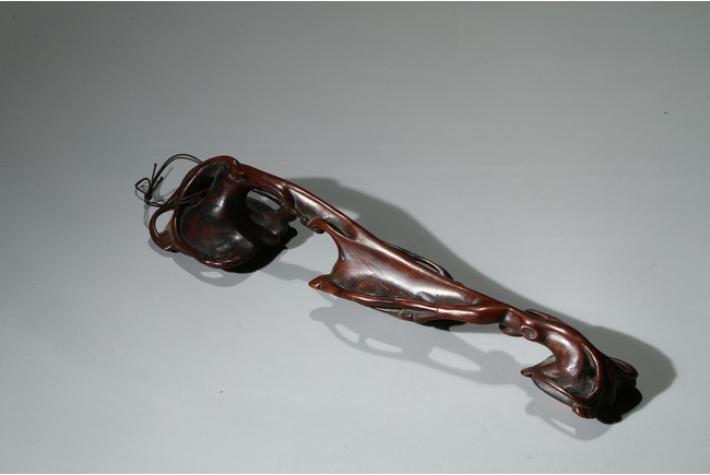 A WOOD CARVED JADE INLAID RUYI SCEPTER 清 黃楊木鑲玉如意