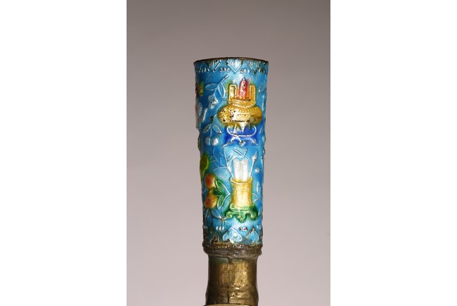 燒藍工藝又稱點藍工藝、燒 銀藍、 銀琺瑯, 是以銀作胎器, 敷以琺瑯釉料燒製而成,尤 以藍色釉料與銀色相配最美而得名。燒 藍工藝是中國傳統的首飾工藝之一, 由於這種 “藍” 只能燒制在銀器表面, 因此也稱爲 “燒銀藍” 。