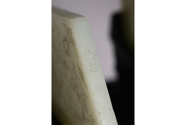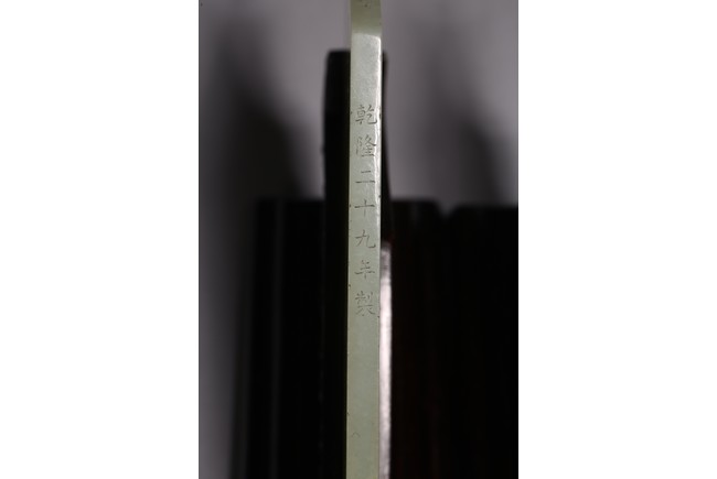 磬是古代重要的禮樂器,乾隆時期用於重要典禮中演奏,聲音清脆,傳聲較遠。本器青白玉製成,玉質細膩溫潤,瑩潤光潔,光氣十足。玉磬雙面均陰刻“龍紋”“祥雲”“寶珠”,雕工精湛,細緻入微,部刻畫細緻,雙目平視前方,神態威猛張揚,身形遒勁,鱗片齊整,張牙舞爪,穿梭於祥雲之中,追戲寶珠,大有氣奪千里之勢,神形俱佳,栩栩如生。整體雕琢拋光一絲不苟,平面打磨平滑如鏡。側面陰刻“乾隆二十九年制”“大呂”款識。字跡清晰嚴謹,力道十足。配卷雲紋木座,成對保存完好。 (參閱2014年佳士得香港秋季拍賣會寓覺於物專場2941 號拍品成交價:HKD 6040000)