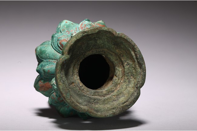 佛像頭頂肉鬃,寬額豐頤,面相沉靜,眼光俯視,笑意含蓄,神態優雅,體態豐腴,身姿修長,身著長袍,衣紋簡潔,線條流暢,雙手皆施“禪定印”置於膝蓋之上,雙腿跌伽安坐於仰覆蓮座之上,蓮瓣寬肥飽滿,尖部外翹。來源: 德州達拉斯私人藏家提供 Provenance: Property from a Dallas, Texas private collection