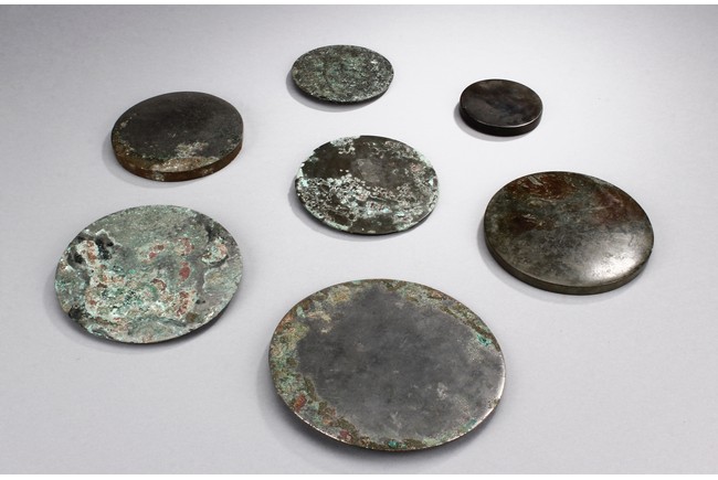 Chinese. Consisting of seven circular bronze mirrors. Han to Tang Dynasty period.