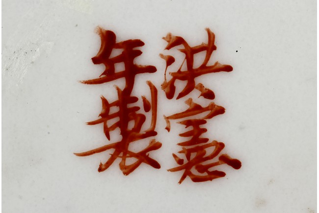 The body is decorated with foliage patterns reserved on white ground, the nek decorated with a continuous ruyi band. The bottom bears four character 'Hongxian' mark. Republic period.