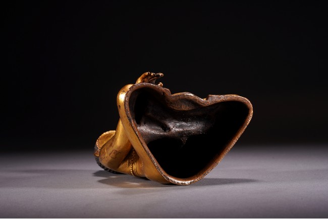 此尊造像,額頭寬闊,胸臂健碩,特別是佛陀手臂及雙手,將渾圓彈性的青春肌膚表現的觸手可及;頭部在整個坐像中所佔比例稍大,大額頭、眉眼之間距離較寬,雙頰、下頜柔潤而豐滿;與頭部相比,造像軀幹稍短,上肢及手略長,左手臍前結禪定印,右手結降魔觸地印,身著貼體袒右肩袈裟,衣角搭於左肩上,為釋尊標準成道像。