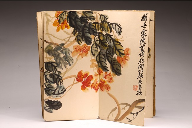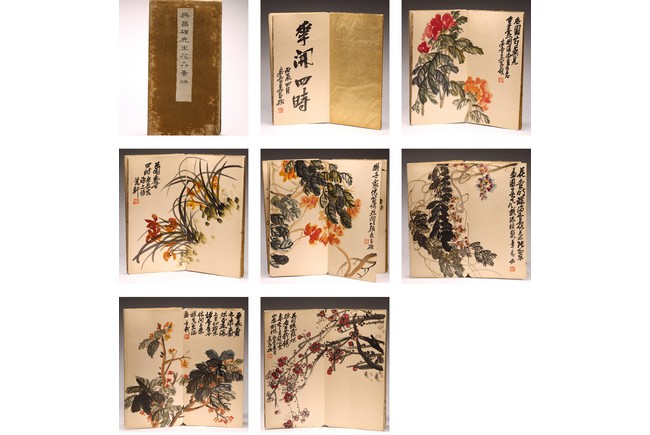 Color and ink on paper. Flowers. Six leaf album. Each inscribed and signed Wu Changshuo, each with one seal mark.
