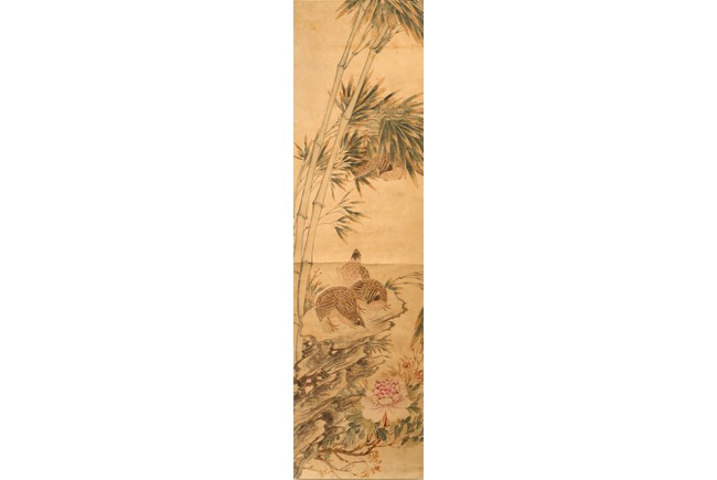 A COLOR AND INK ON PAPER 'BIRDS AND BAMBOO' PAINTING 佚名 竹鳥牡丹 設色紙本 立軸