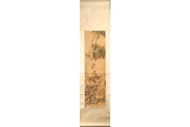 Color and ink on paper. Bird and bamboo. Anonymous. Hanging scroll.