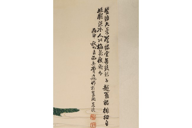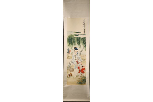 Color and ink on paper. Boy and lady. Hanging scroll. Inscribed and signed Fei Danxu, with two seal marks of the artist.