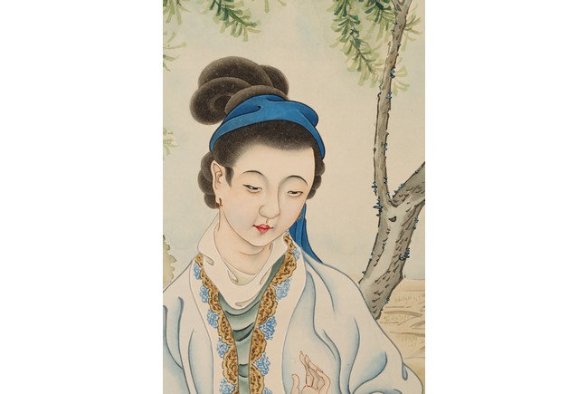 A COLOR AND INK ON PAPER 'BOY AND LADY' PAINTING    費丹旭(款) 童子仕女圖 設色紙本