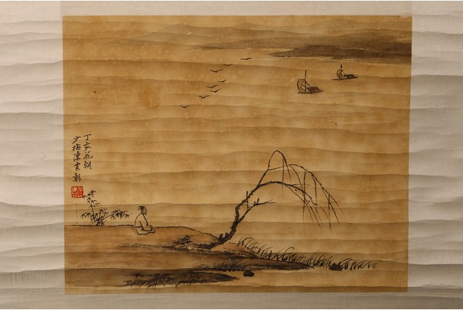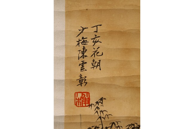 Color and ink on paper. Figure and landscape. Dated and signed Chen Yunzhang, with one seal mark of the artist.