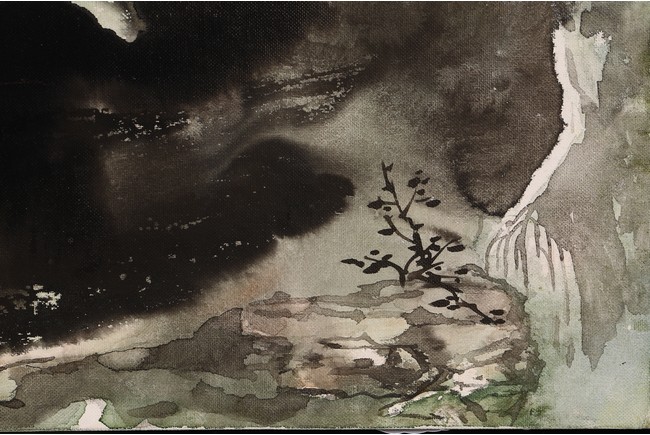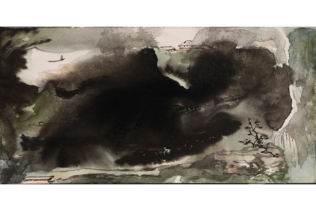 A SPLASHED COLOR AND INK ON CANVAS PAINTING 佚名 大風堂風格 潑墨潑彩山水