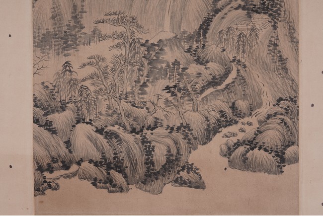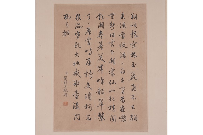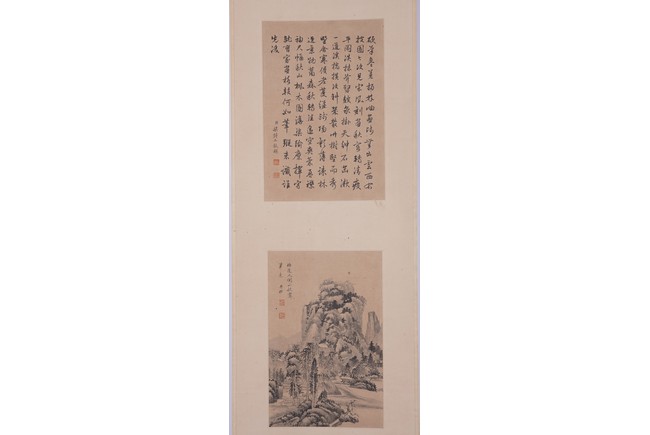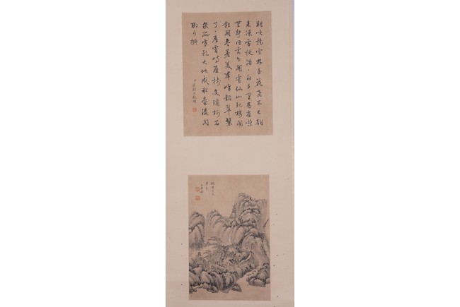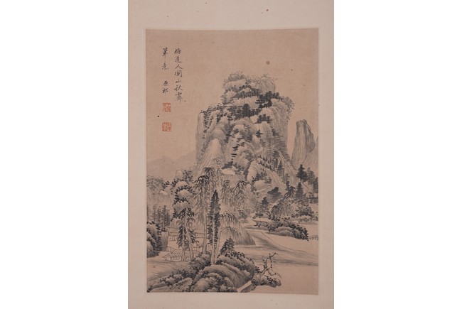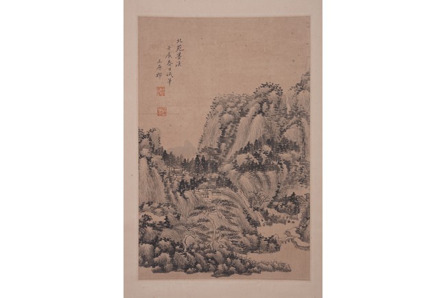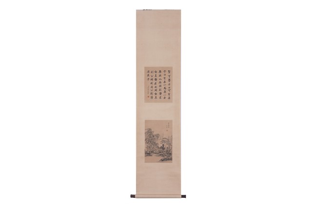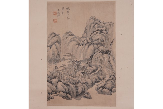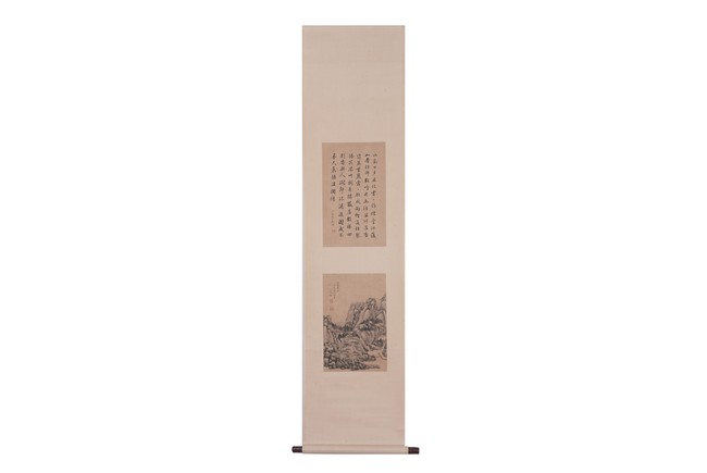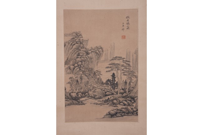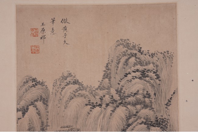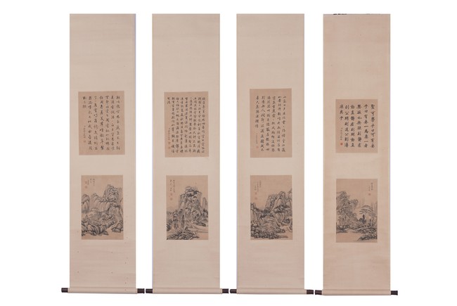 Ink on paper. Set of four landscape paintings. Hanging scroll. Inscribed and signed Wang Yuanqi with seal marks, with calligraphies signed Liang Shizheng with seal marks.