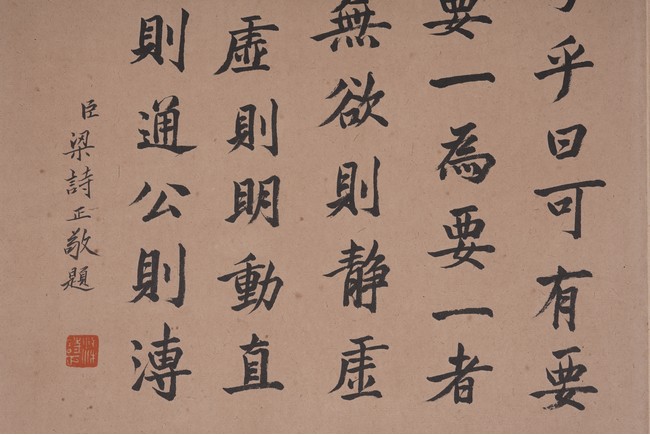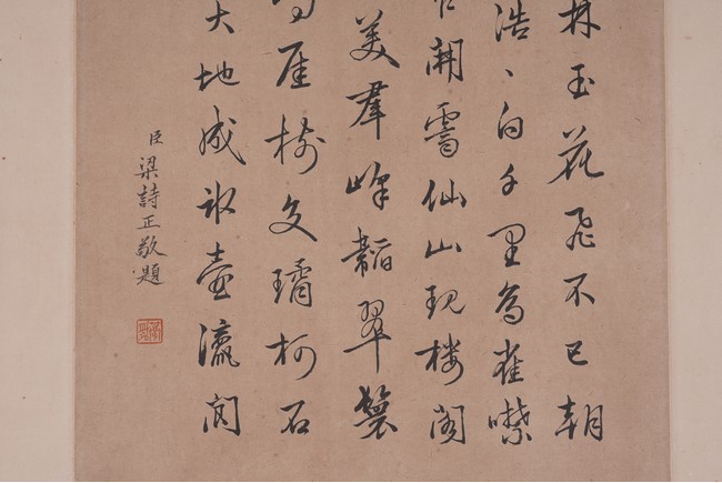王原祁:字茂京,號麓台、石師道人,王時敏孫。以畫供奉內廷,康熙四十 四年奉旨與孫嶽頒、宋駿業等編《佩文齋書畫譜》,五十六年主持繪《萬壽盛典 圖》爲康熙帝祝壽。擅畫山水,繼承家法,學元四家,以黃公望爲宗,喜用幹筆 焦墨,層層皴擦,用筆沈著,自稱筆端有金剛杵。與王時敏、王鑒、王翬並稱“四 王”。梁詩正:字養仲,號薌林,又號文濂子,錢塘(今浙江杭州)人。清代官 員、書法家。梁詩正經常隨乾隆帝出巡,朝廷重要文稿多出其手。
