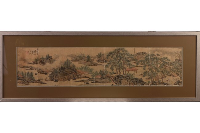 A CHINESE COLOR AND INK LANDSCAPE PAINTING 文徵明(款) 山水 紙本 鏡框