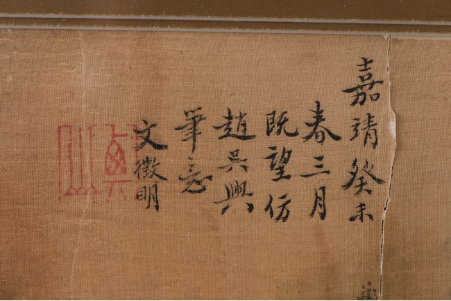 Ink and color on paper. Landscape. Framed. Signed Wen Zhengming and with one seal of the artist.