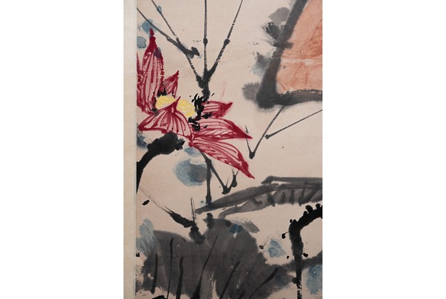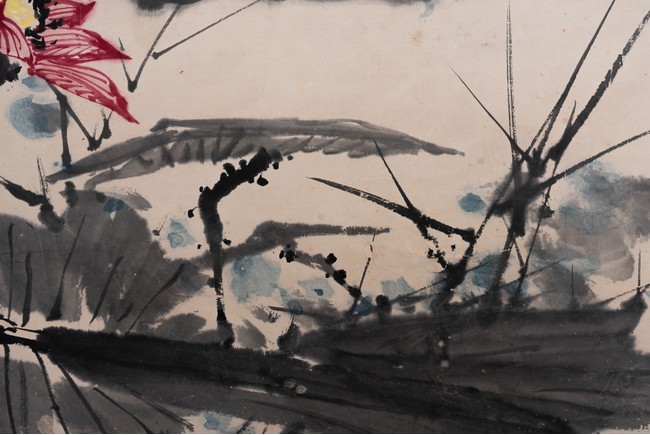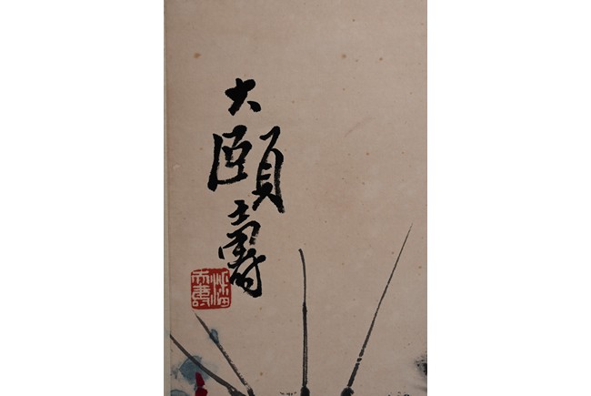 落款:大頤壽(潘天壽:字大頤,自署阿壽、壽者。現代畫家、教育家。其寫意花鳥初學吳昌碩,後取法石濤、八大,曾任中國美術家協會副主席、浙江美術學院院長等職。)