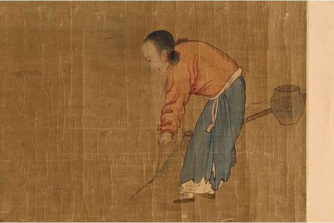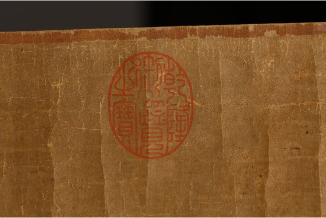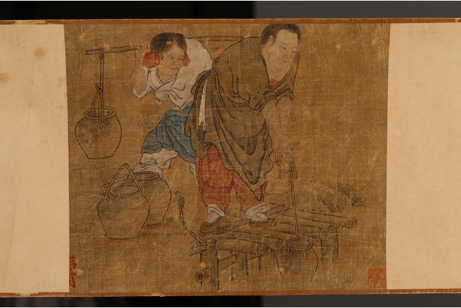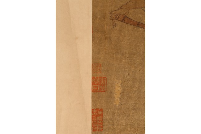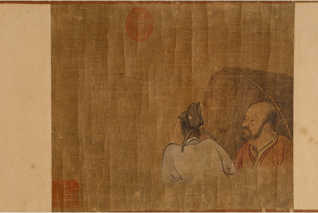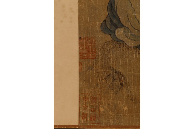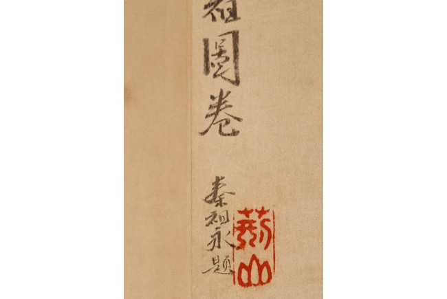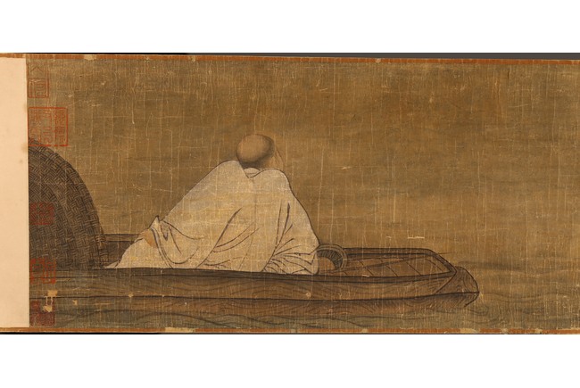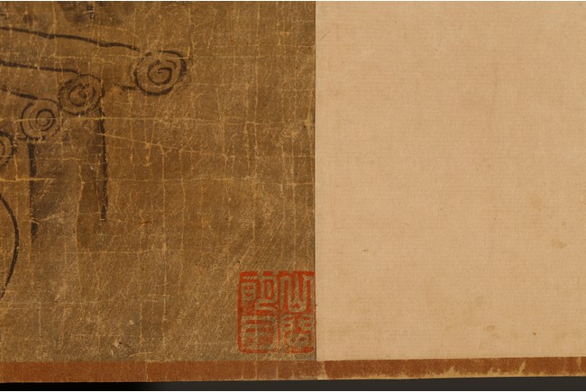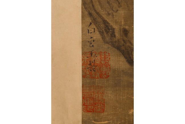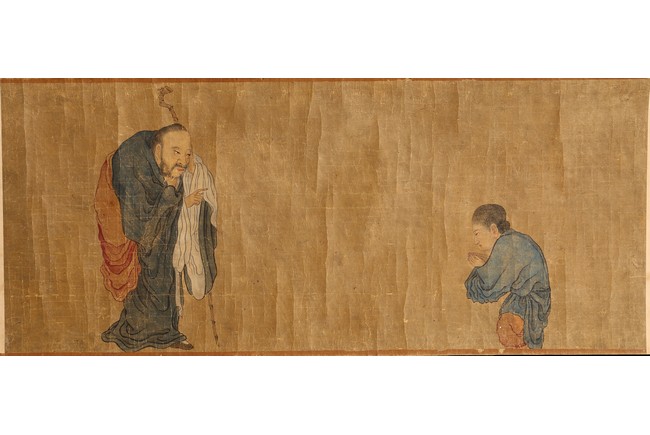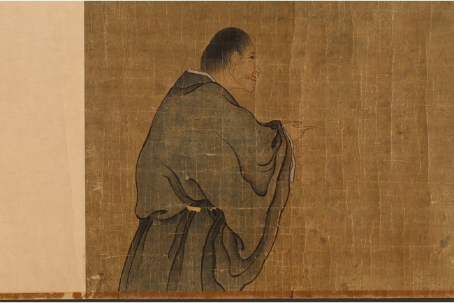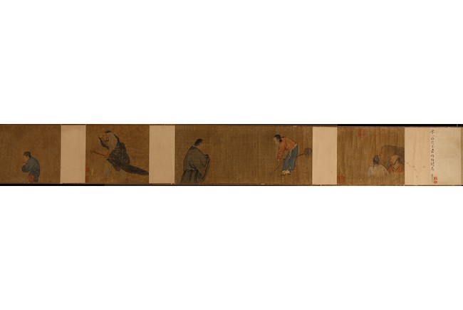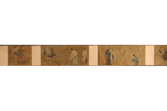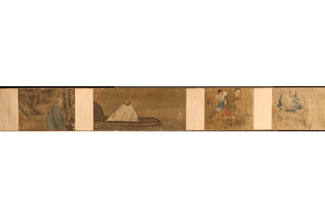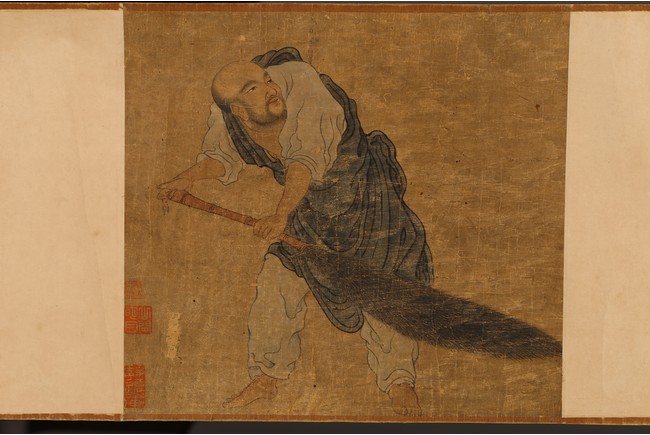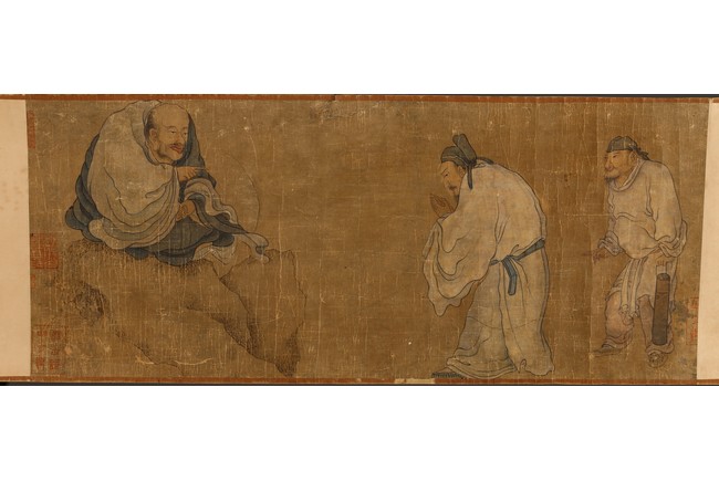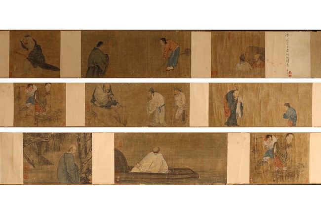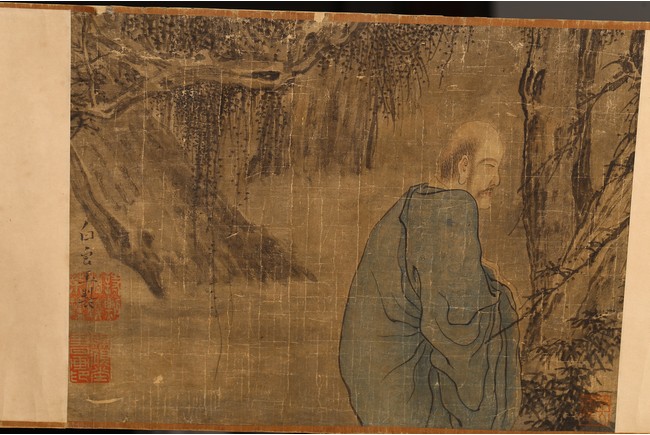 Chinese. Depiction of the Zen Buddha. Handscroll. Color and ink on paper. Signed Bai Liangyu with seal marks of the artist and the collector.