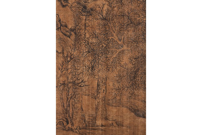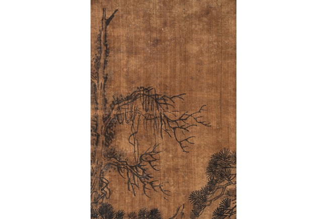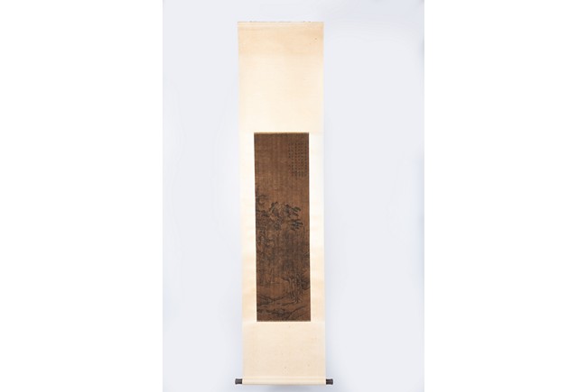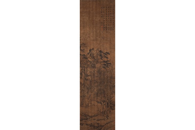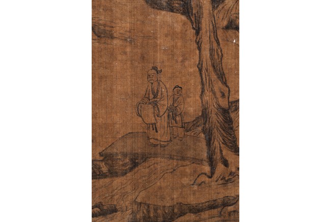 A INK ON SILK LANDSCAPE PAINTING 衡山 松下高士立軸 絹本