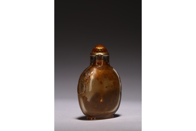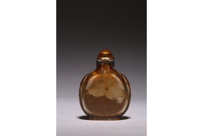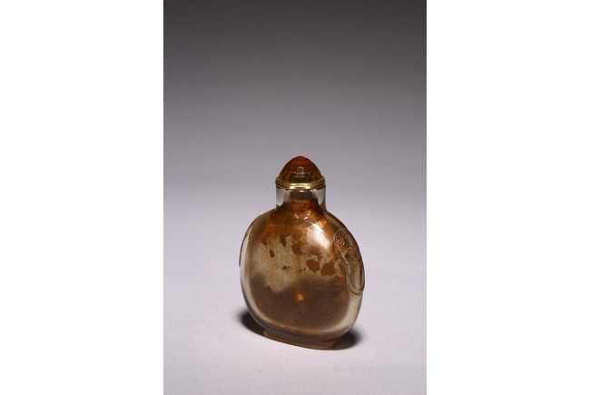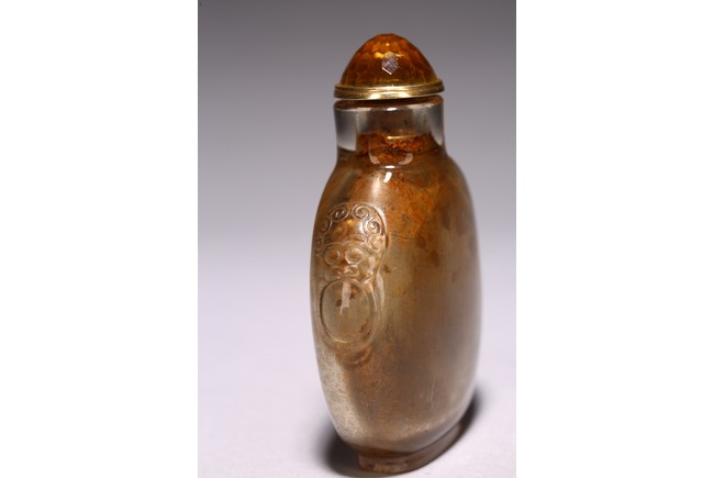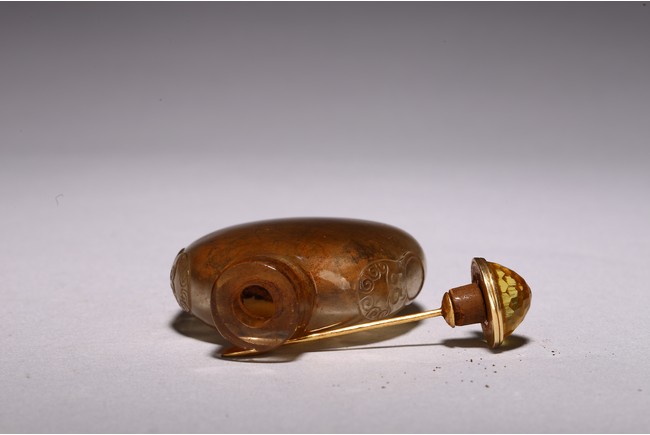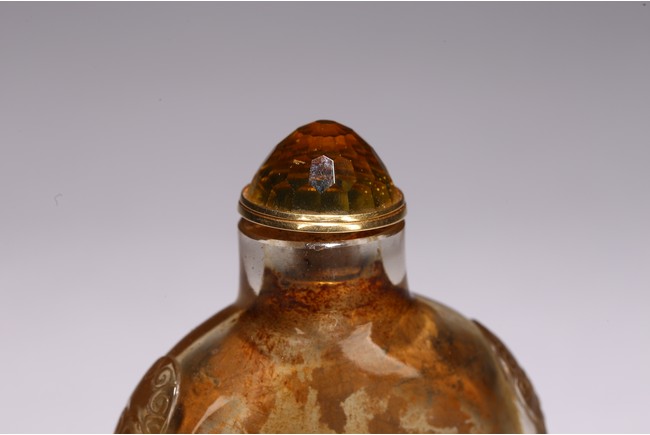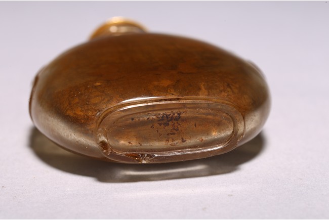 A CHINESE CRYSTAL SNUFF BOTTLE 清 水晶鼻煙壺(蓋邊與勺18K金)有傷