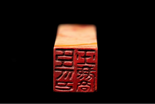 對章形制碩大,取材優良,方正有度,紅黃白三色交融,紋理變化多端,相互映襯,石質優良,瑩潤通透,包漿厚重。印文:臣玉麟印;雪琴。彭玉麟:字雪琴,號退省庵主人、吟香外史,清朝晚期軍事家、書畫家,人稱「雪帥」。湘軍水師創建者、中國近代海軍奠基人,被譽爲「晚清第一清官」。