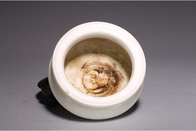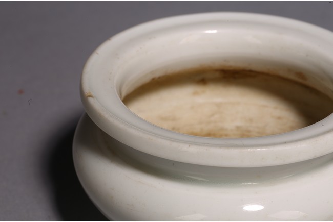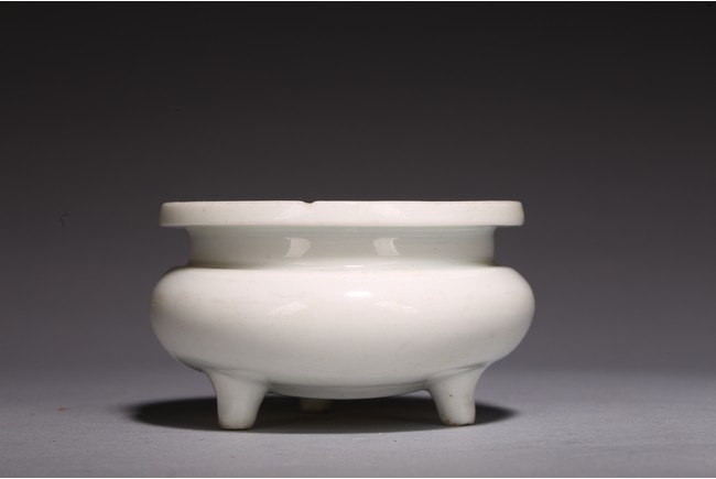 圓口,束頸,鼓腹,器身滿施白釉,釉色潔白無瑕,釉水肥厚,器型小巧可愛,文氣十足。
