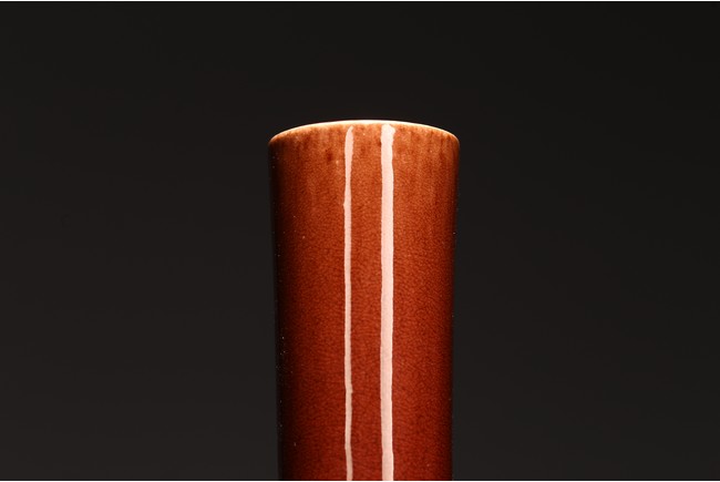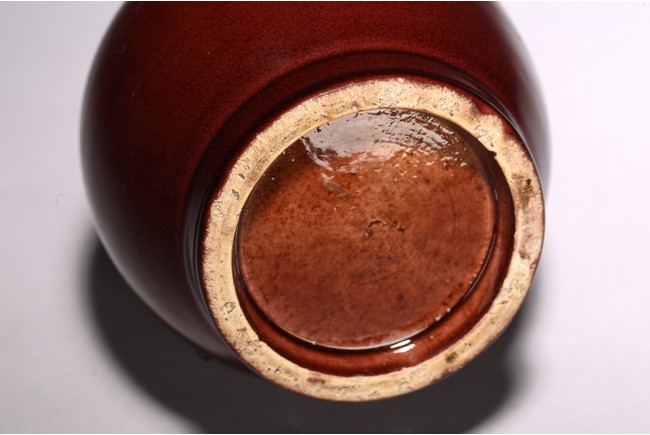 通體施霽紅釉,髮色深沉濃豔,釉面呈橘皮狀,口沿一線燈草口,時代特徵鮮明。