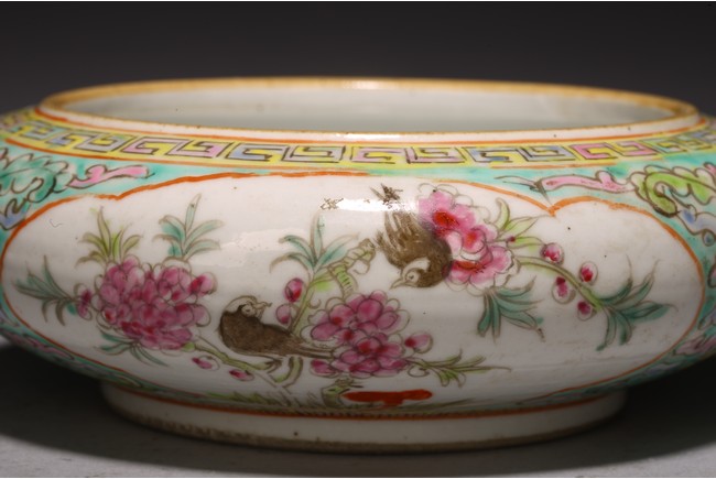 Decorated with birds and flowers to the exterior, baes inscribed with reign mark. Qing Dynasty period.