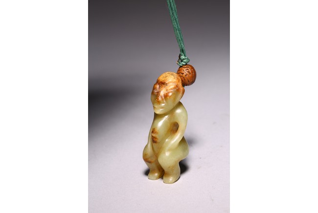 Provenance: From a private Los Angeles collection 黃玉製成,局部帶有褐色沁色,色澤濃郁,甘黃純美,玉質溫潤細膩。圓雕站立人物,寥寥數刀即表現出人物的神態及身姿,足見作者具有深厚的製作水平。 來源: 洛杉磯私人藏家收藏