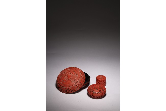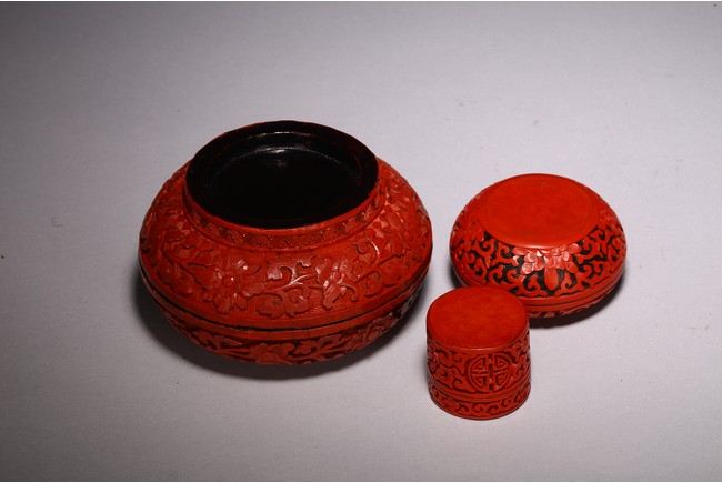 Including two round cinnabar lacquer boxes and a cylindrical form box.