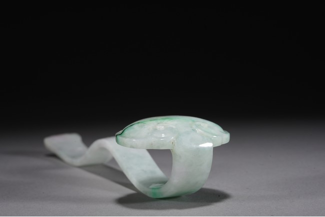 翡翠細膩堅韌,溫潤光潔。如意頭正面雕刻如意造型,寓意“富貴如意”。圖案精細整齊,器型規整,穩重精緻,線條流暢。器身素面,乾淨整潔,髮色陽綠,賞玩陳設佳器。