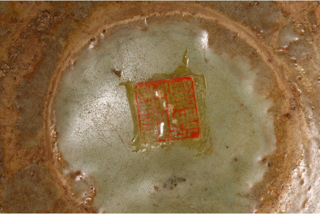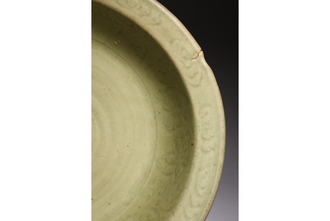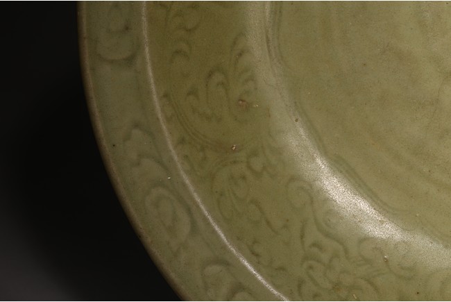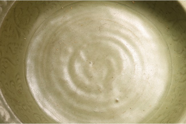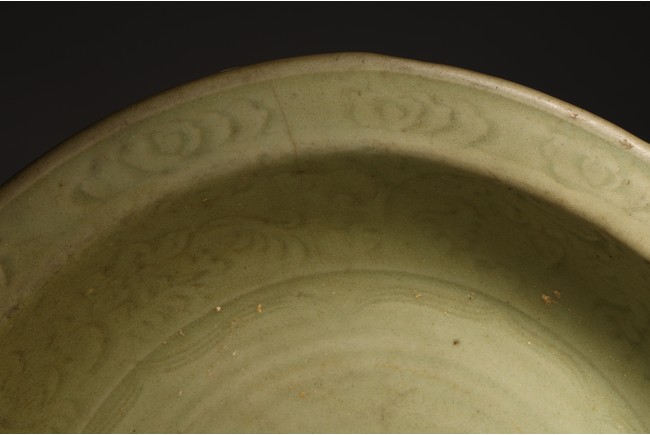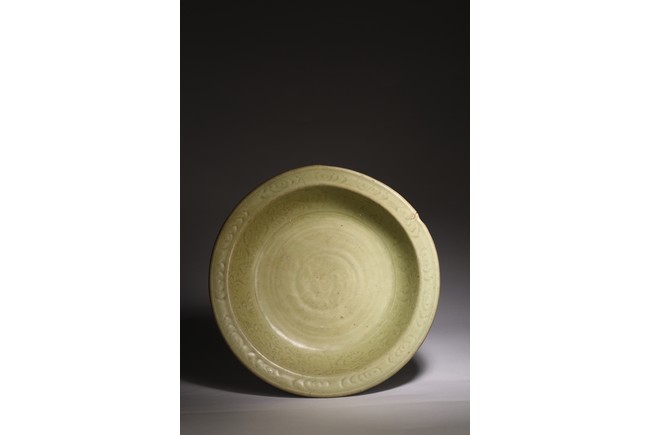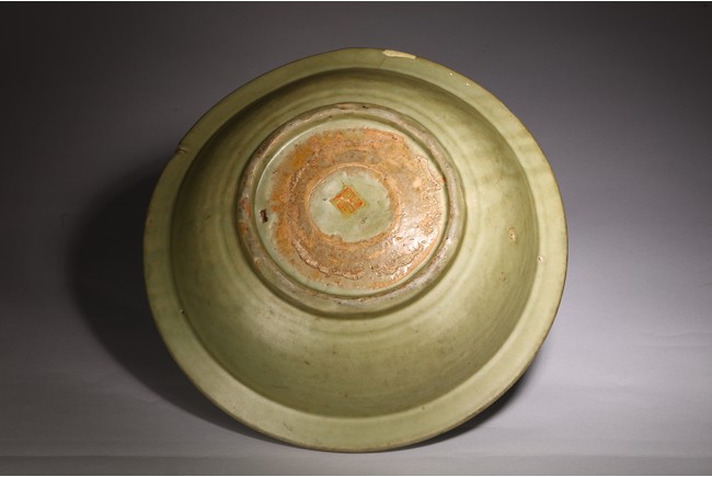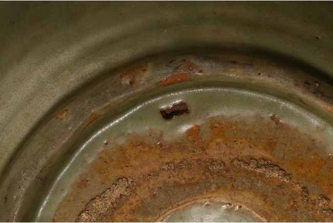 Chinese. The heavily potted sides rising to everted rim, covered overall in olive green glaze. Ming Dynasty period.