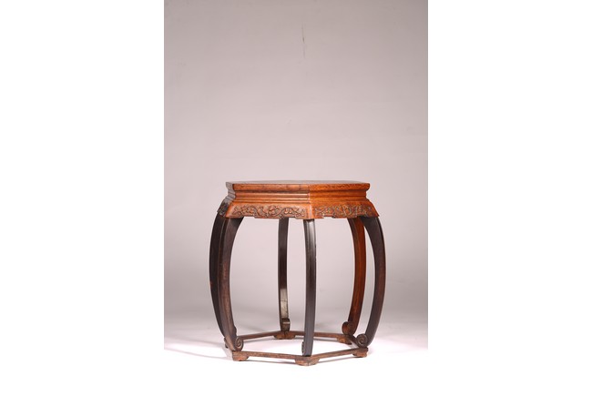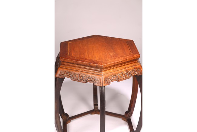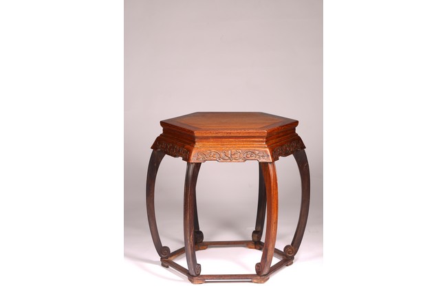 A LARGE CHINESE HARDWOOD HEXAGONAL STAND 民國 紅木雕六角香幾