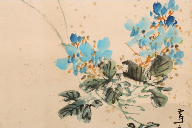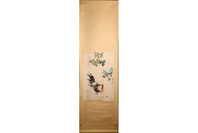 Color and ink on paper. Rooster and insects. Hanging scroll. Signed Xuetao and with one seal mark of the artist.