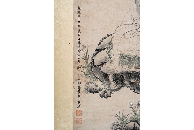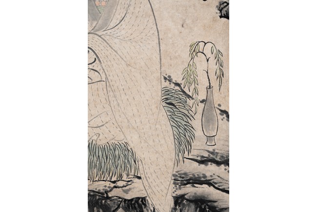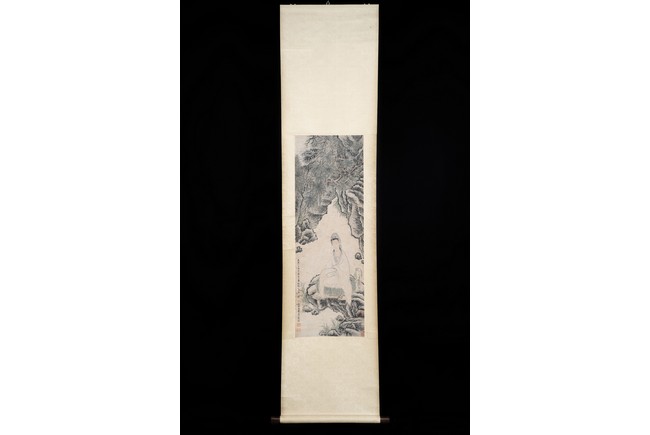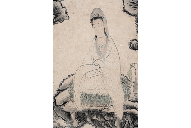 Jin Nong (attributed to). Color and ink on paper. Guanyin. Inscribed and signed Jin Nong, dated to 1760, with five seal marks of the artist and collector.