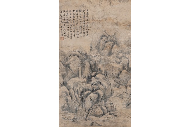 Ink on paper. Landscape. Hanging scroll. Inscribed and signed Dong Bangda, with one seal mark of the artist. Attributed to Dong Bangda.