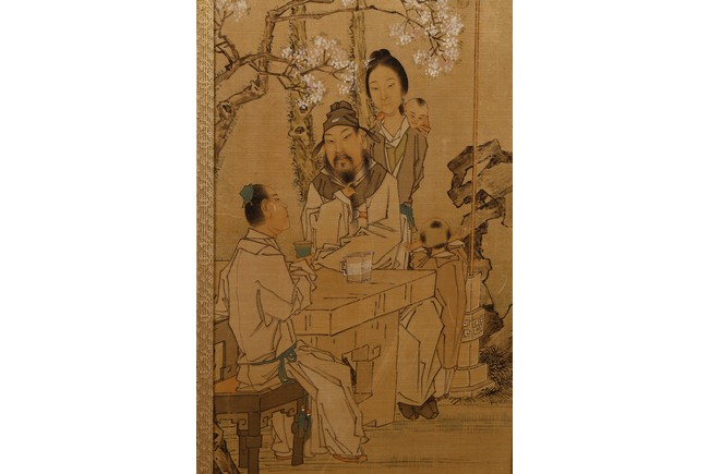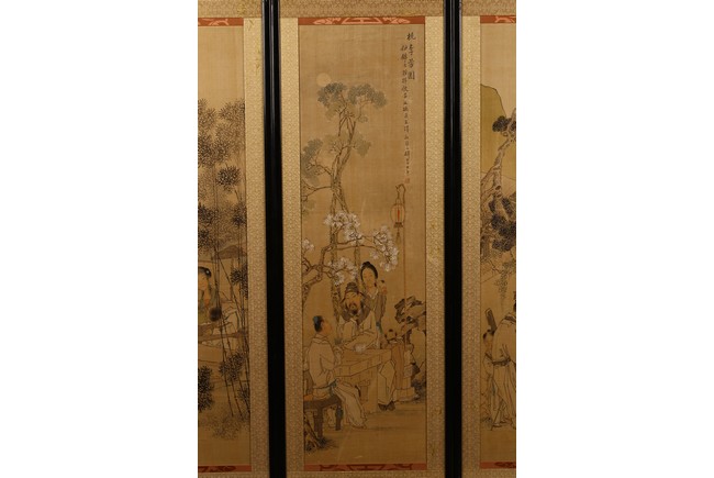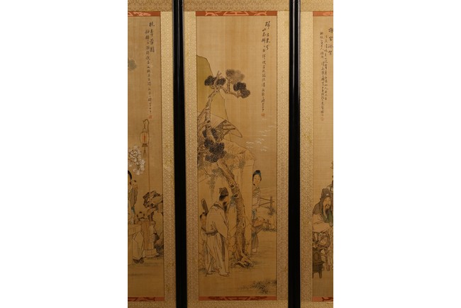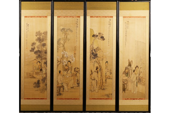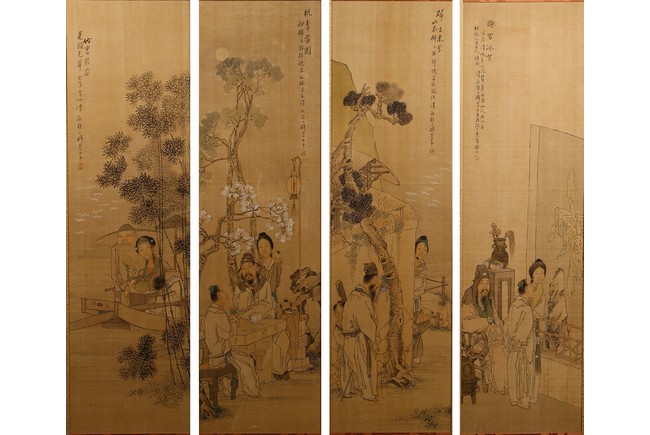 Provenance: From a private family collection, San Diego, California 題識: 1.竹裡煎茶 是園見華新羅有此清溪樵子錢慧安; 2.桃李芳園 仿錦衣衛指揮使呂振廷原本,清溪樵子錢慧安; 3.歸去來兮 略參錦衣衛指揮使呂振廷法,清溪樵子錢慧安; 4.謝家詠絮 丁亥清味月下浣背白陽山人本以應耕余六兄大人雅屬,清溪樵子錢慧安并記于雙管樓下。鈐印:吉生 來源:南加州聖地亞哥家族舊藏