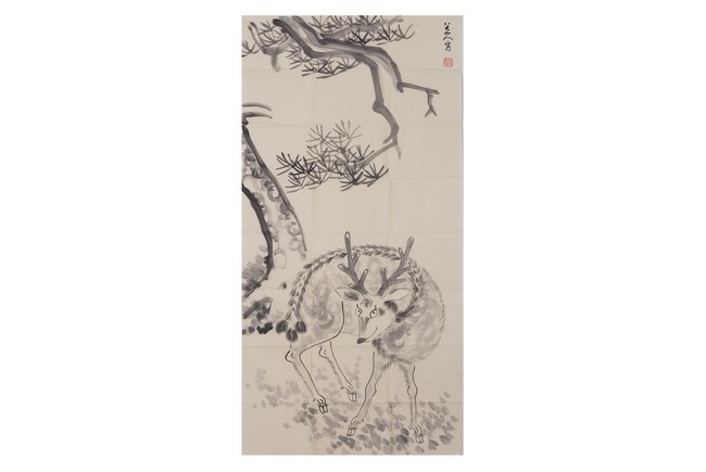 AN INK ON PAPER 'DEER' PAINTING 八大山人(款) 鹿 鏡心 紙本