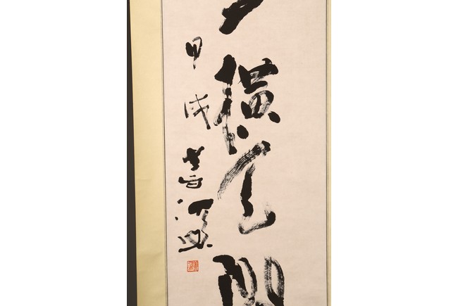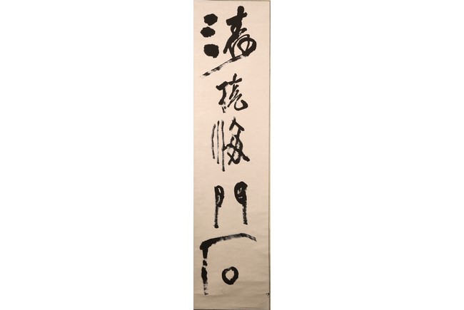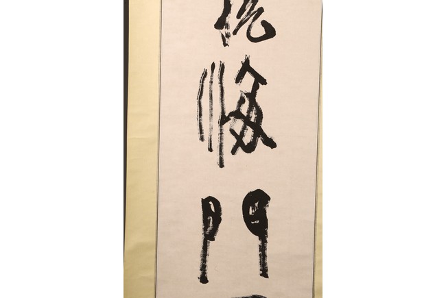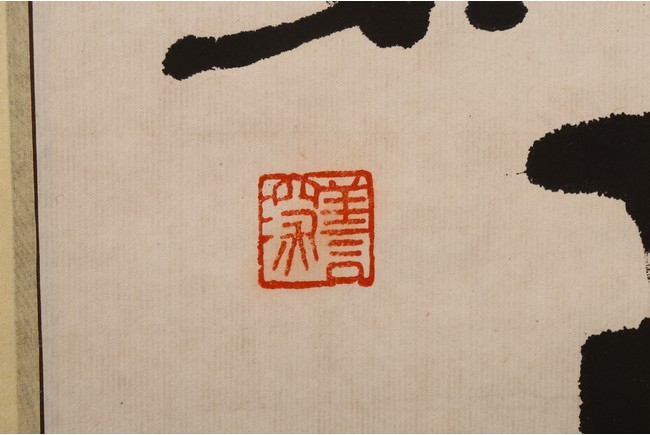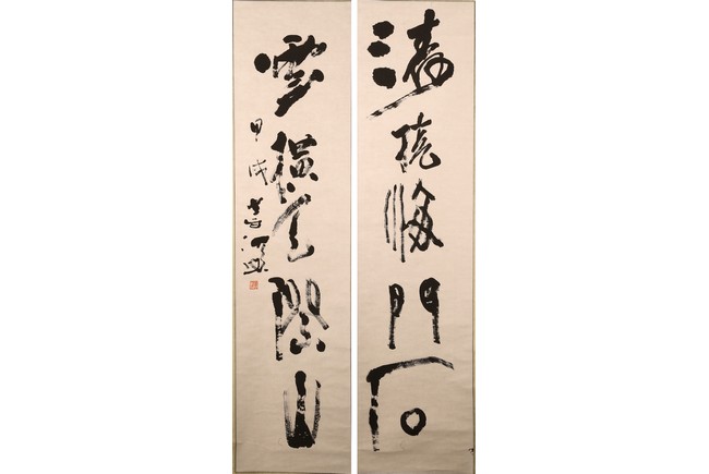 Ink on paper. Five character calligraphy couplet. Dated and signed Shen, with one seal mark of the artist. Hanging scroll.