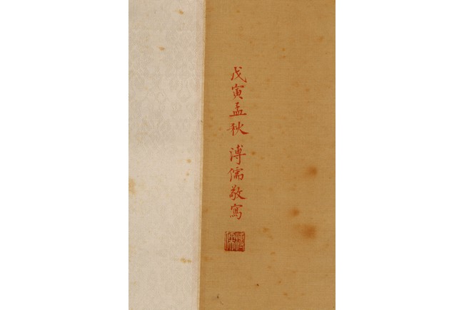 Provenance: Private collection, San Francisco Bay Area 題識: 戊寅孟秋 溥儒敬寫 鈐印: 溥儒 來源: 北加州灣區私人收藏家提供