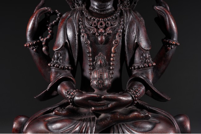 天然老沉香整雕,造像器型別緻,耳垂於肩,五官精緻,雙目有神,衣著自然,呈珈跌坐姿坐於蓮花台上,香味清香迷人,包漿渾厚,皮殼老辣,收藏供奉精品,恭請有緣人。