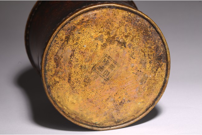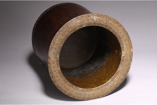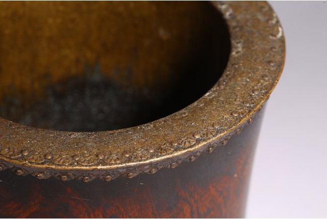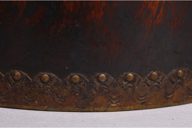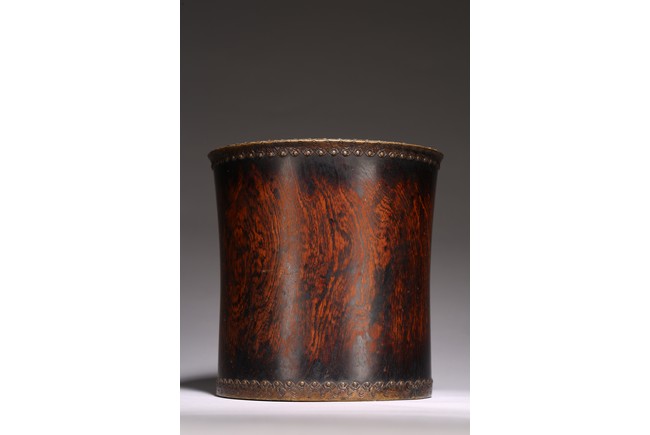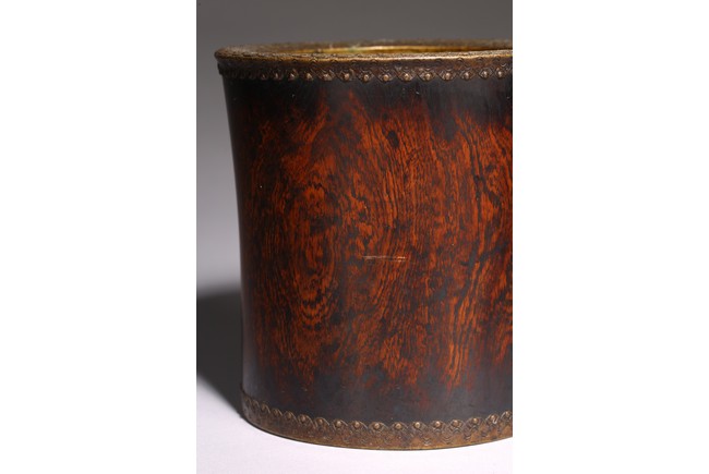 Mounted with bronze to the top and bottom rim, the wood with attractive wave like grain.