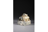 BLACK AND WHITE SOAPSTONE 'MYTHICAL BEAST' SQUARE SEAL
