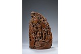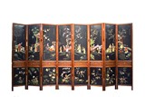 A HARDSTONE INLAID 'FIGURES' EIGHT-PANEL HARDWOOD SCREEN