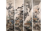 胡術(十九世紀) 人物故事圖 四條屏 設色紙本 立軸