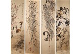 虛谷(1824-1896) 松鼠金魚圖 四條屏 設色紙本 立軸