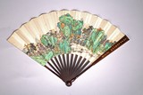 錢維城(款) 青綠山水 成扇 紫檀扇骨
