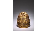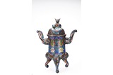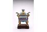清乾隆 銅鎏金掐絲琺琅饕餮紋鼎爐