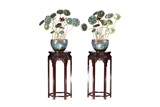 清 銅胎掐絲琺瑯荷花盆景一對 帶紅木幾