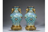 銅胎掐絲琺瑯纏枝蓮紋象耳壁瓶一對