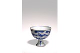 A CHINESE BLUE AND WHITE FIGURAL STEM CUP