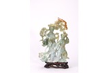 A TRICOLOR JADEITE FIGURAL GROUP CARVING
